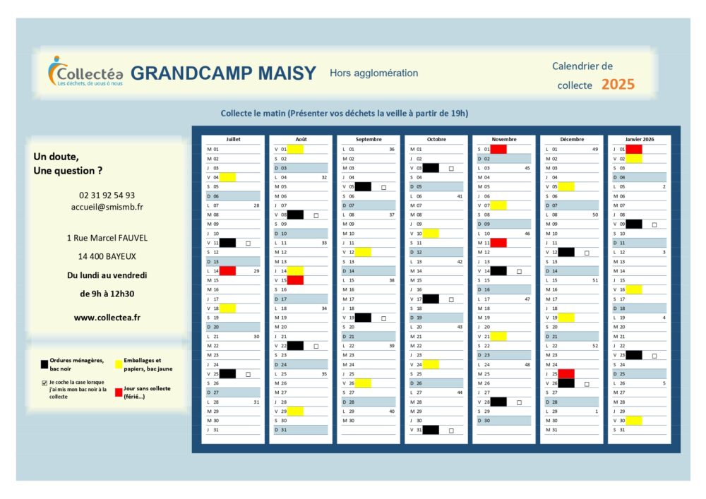 A compter du 1er juillet, le ramassage des ordures ménagères s’effectuera selon le calendrier suivant :